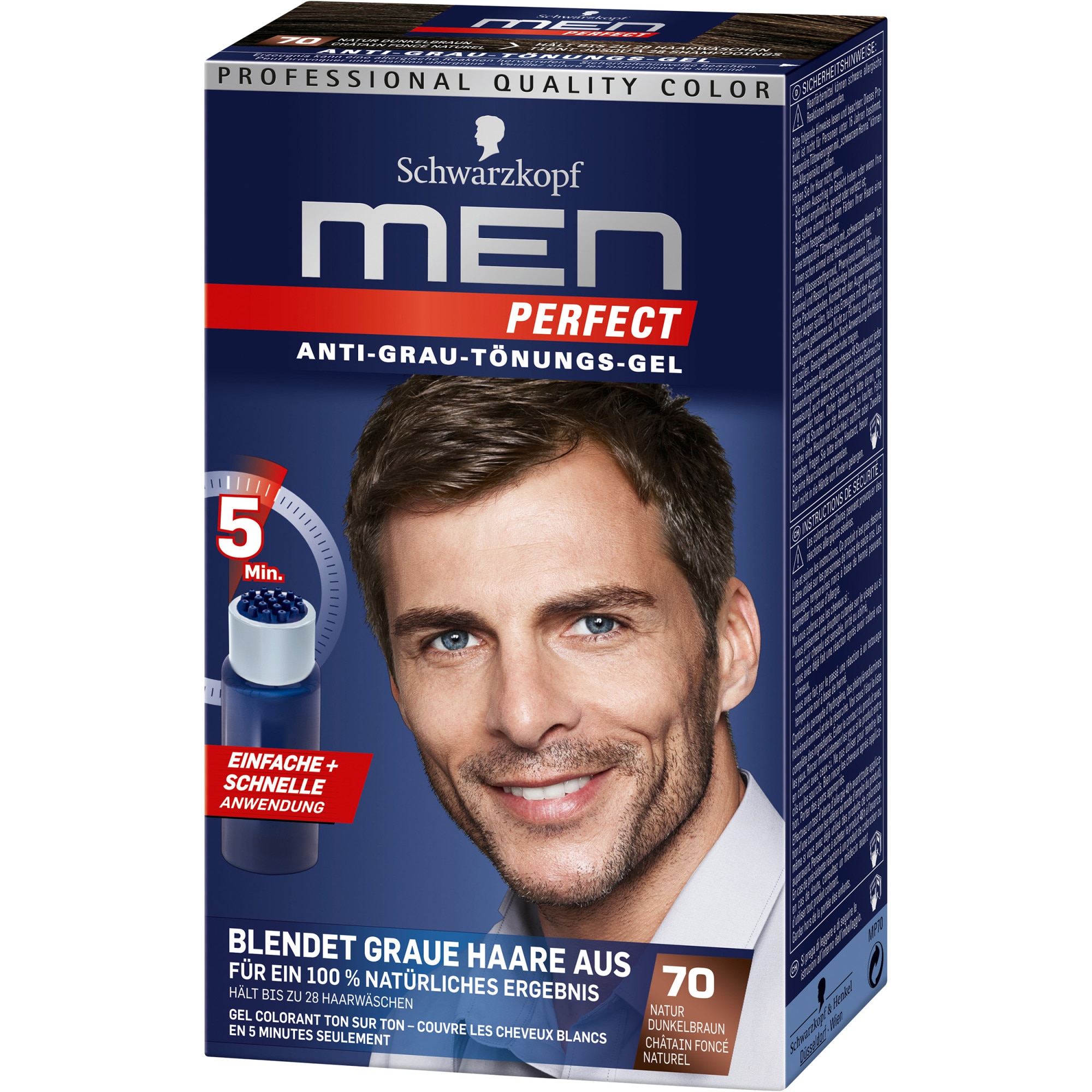 Gel colorant Schwarzkopf Men Perfect Anti-Grey 70, Castaniu inchis natural